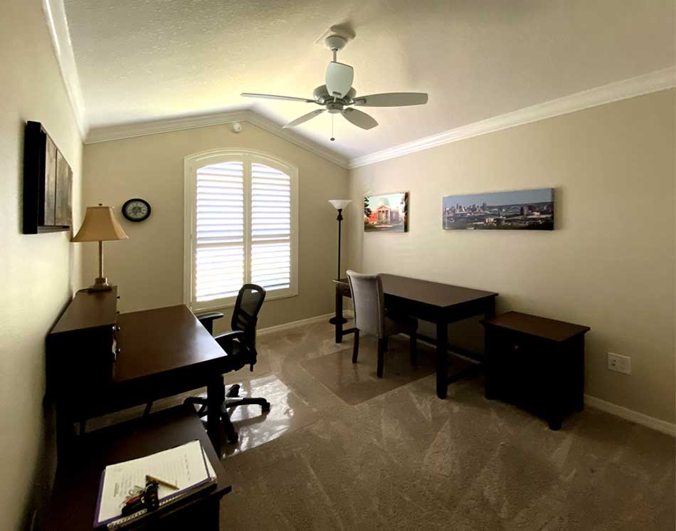In today’s world, many people have returned to the office, yet plenty still work from home. That freedom means a family member can visit and stay longer, carrying their work with them wherever they go. Whether their home is in the icy Finger Lakes of northern New York or in balmy Key West, geography no longer sets the limits. The world has opened up to long visits and extended stays with family. For homeowners, this shift has reshaped how rooms are designed. What was once only an office now needs to embrace dual purposes, becoming both a welcoming bedroom and a functional workspace. The days of one guest room and one office are fading. Family members are staying longer, enjoying more time together, and no longer rushing home to meet office demands. The transformation feels less like a compromise and more like an embrace. The guest room extends its arms, offering comfort and utility at the same time, inviting loved ones to settle in, and feel both productive and at ease. Let’s peek into the guest bedroom of a Lily model to see how a guest room can welcome family to stay for the holidays and beyond somewhere in the heart of The Villages.